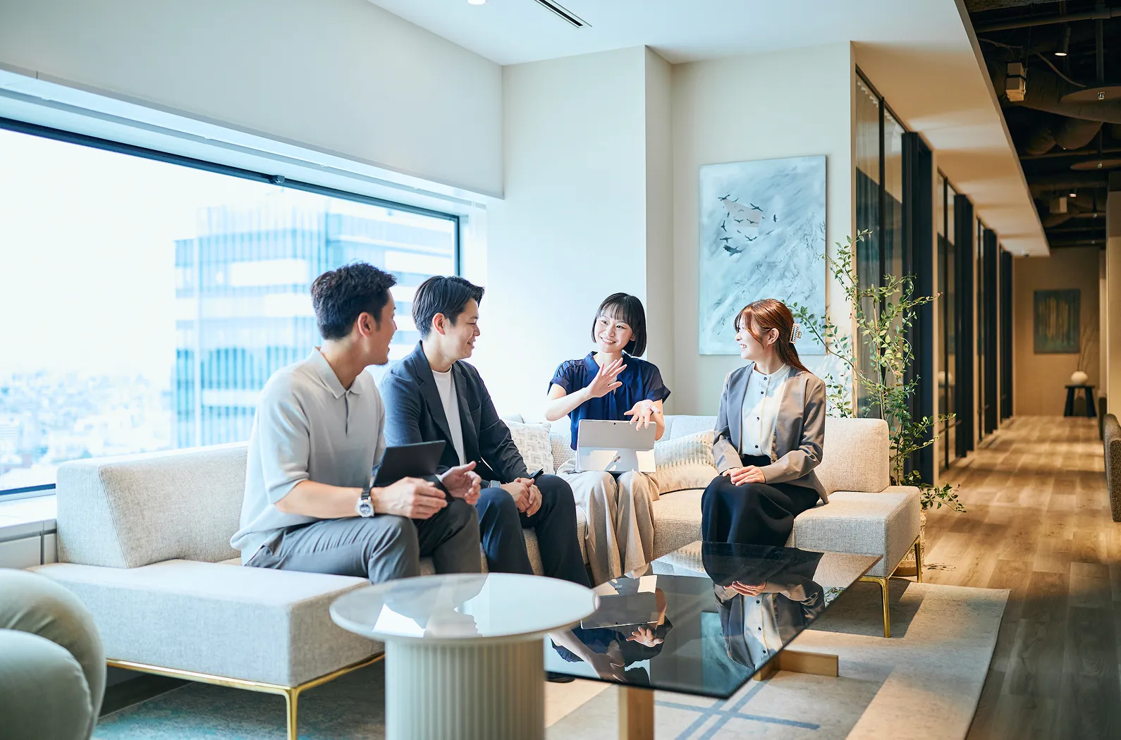 社員が、それぞれのライフスタイルや価値観を尊重しながら、最大限の能力が発揮できるよう、幅広い働き方に対応するため 働き方の選択肢の一つとして、在宅勤務を導入しています。※原則、週2日・月間9日まで