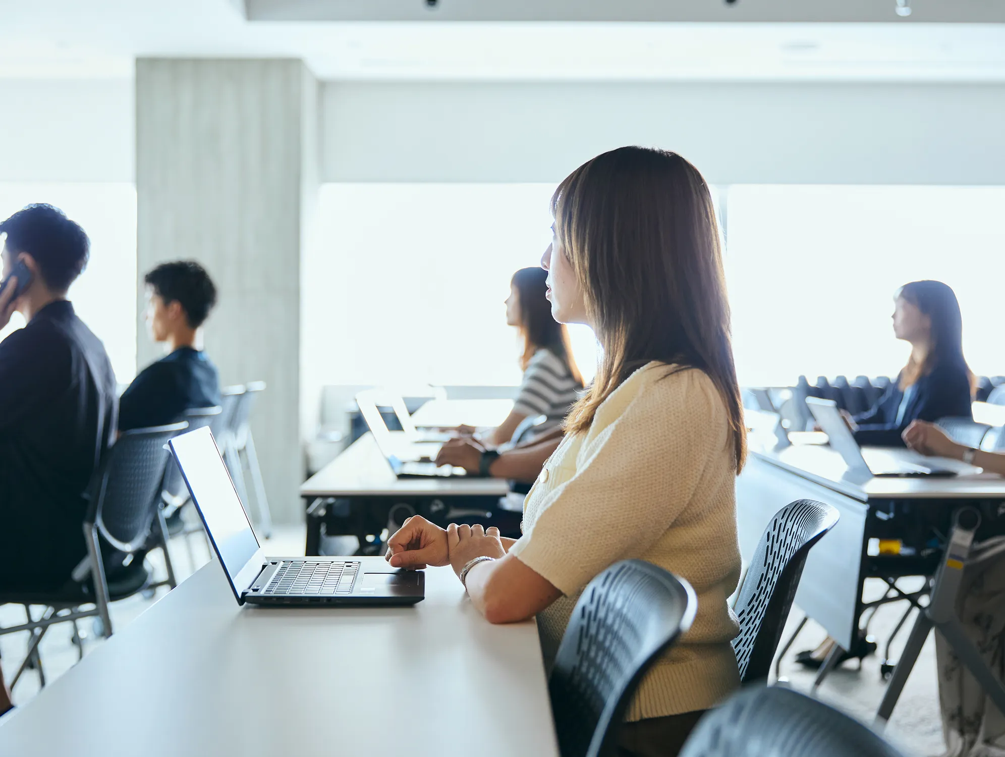 あらかじめ定められた総労働時間の枠内で、社員が各日の出勤及び退勤の時刻を自ら設定できる制度です。閑散期や繁忙期に合わせて、効率的な働き方が選択できます。※当社のコアタイムは原則11:00~16:00です。